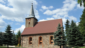 Do zachodniej elewacji kościoła dostawiona jest dzwonnica o konstrukcji słupowo-ramowej, oszalowanej. Jej bryła oparta na kwadratowej w planie podmurówce, stopniowo zwężająca się ku gurze zamknięta jest szpiczastym, ostrosłupowym hełmem, z szerokim okapem, który kryty jest ocynkowaną blachą. Wieńczy go metalowy krzyż.