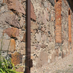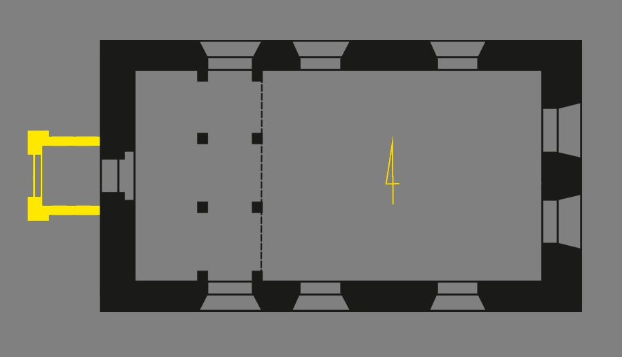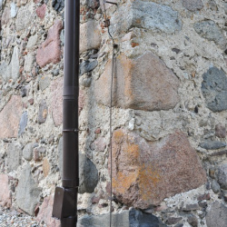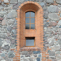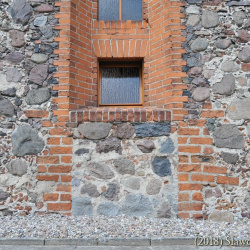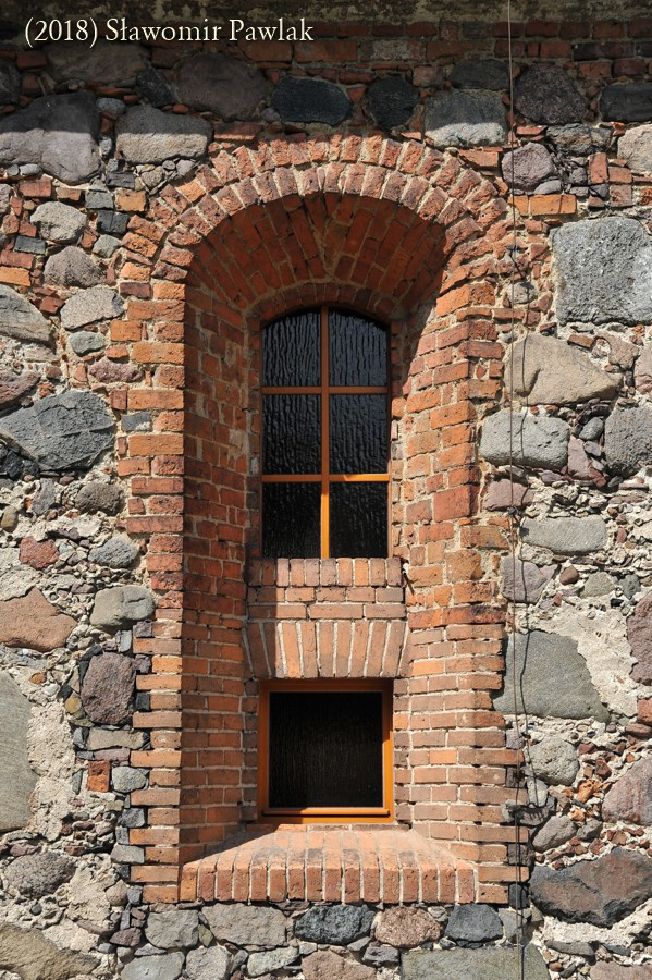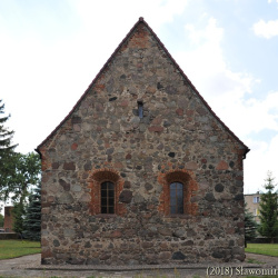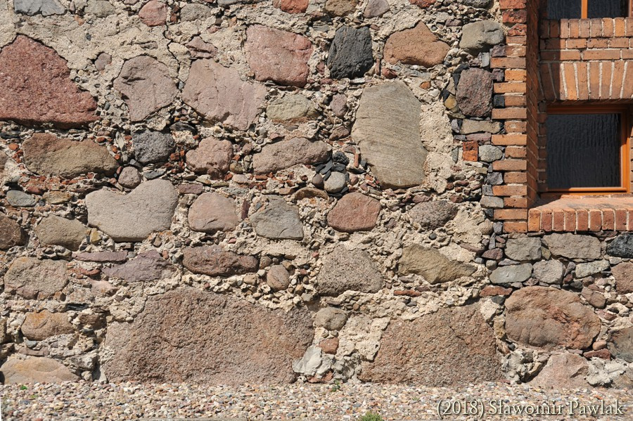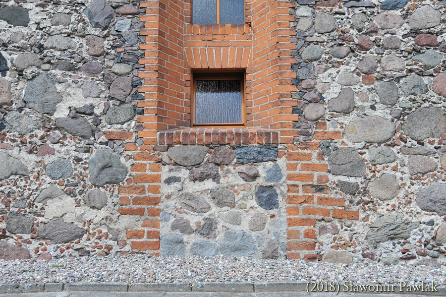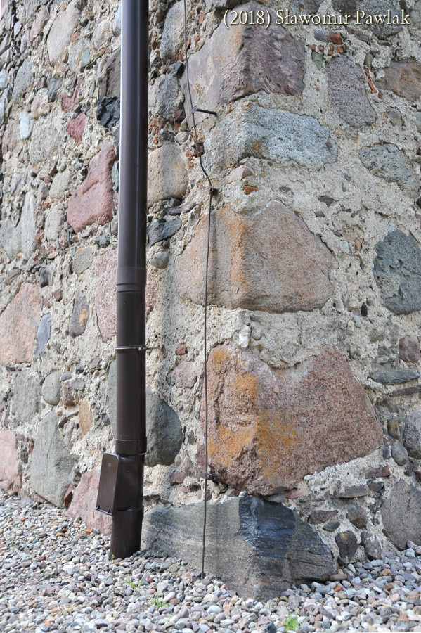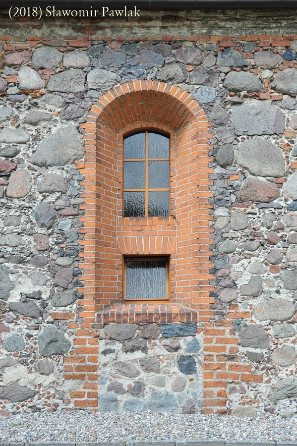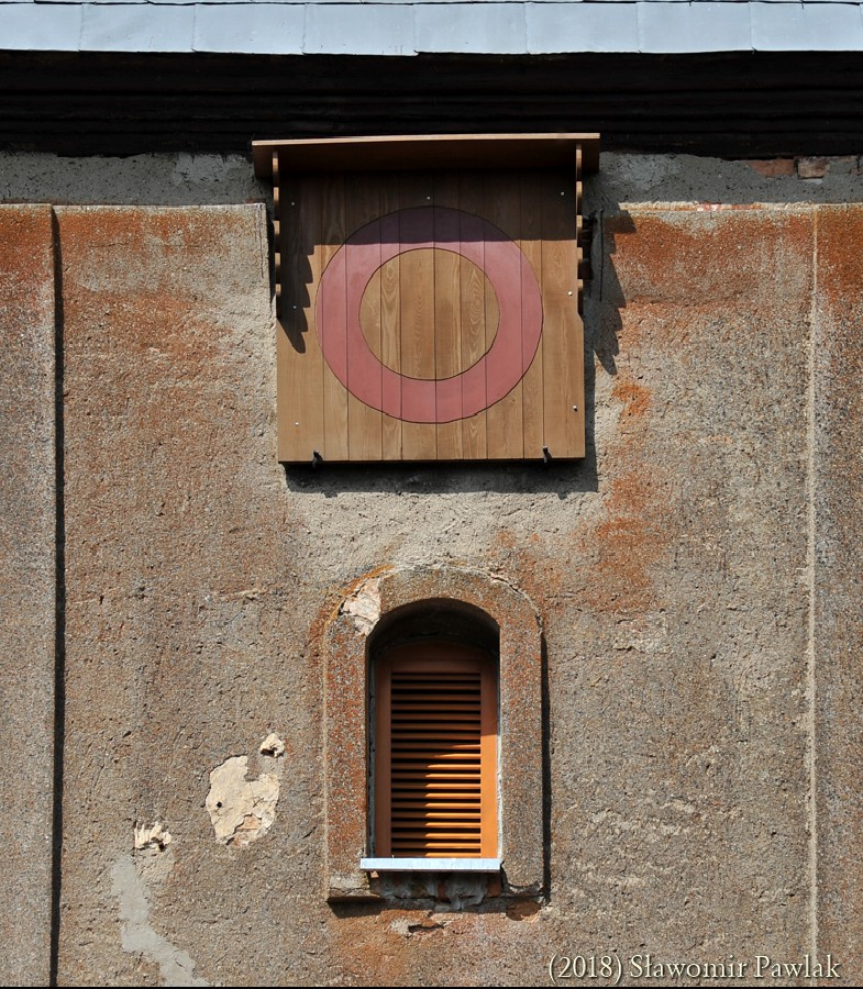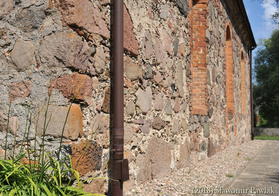 Szczyty kamienne jednolite. Jedynie w szczycie wschodnim wykonano niewielki prostokątny otwór wentylujący poddasze.