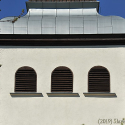 - Empora zachodnia z krótkimi balkonami bocznymi wsparta na słupach. Balustrada prosta płycinowa z profilowanymi gzymsami.
