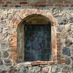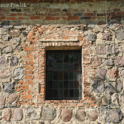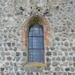 Pierwotne otwory okienne osadzono symetrycznie, trzy w ścianie północnej, dwa w południowej i jedno większe we wschodniej ścianie szczytowej. Ceglane ościeża z fazowanymi krawędziami zamknięto ostrołukami z dodatkowym wieńcem cegieł w archiwolcie. W XIX wieku otwory częściowo zamurowano a proste ościeża zamknięto prostokątnie, łukiem odcinkowym bądź ostrołukiem.