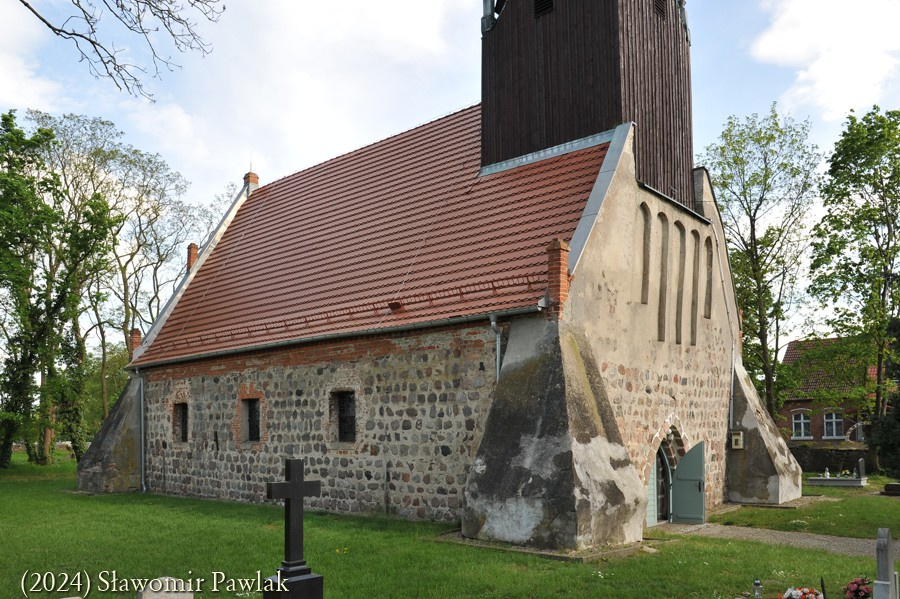 Osiadanie kościoła w niestabilnym gruncie spowodowało pochylanie się ścian szczytowych i konieczność wymurowania masywnych skarp w narożach.