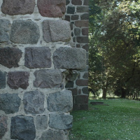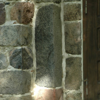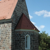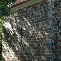 Wszystkie ściany posadowione na kamiennym fundamencie wzniesiono z kwadr granitowych łączonych zaprawą wapienną, ułożonych w regularne poziome warstwy. Ceglany gzyms koronujący ściany wykonano w późniejszym okresie. Wnętrza nawy i prezbiterium zamknięto stropami belkowymi, apsydę kamienną konchą, a kruchtę wieży kamiennym sklepieniem kolebkowym. Dwuspadowe dachy nawy i prezbiterium, pierwotnie nieco wyższe od obecnych, wydzielono kamiennymi szczytami z niewielkimi otworami szczelinowymi. Apsydę nakryto dachem ostrosłupowym wielopołaciowym. Boki podstawy wieży dachami pulpitowymi. Wszystkie pokryto dachówką ceramiczną. Zachowały się duże fragmenty posadzki ułożonej z kwadratowych płytek ceramicznych.