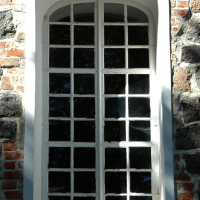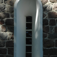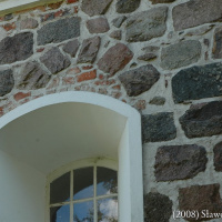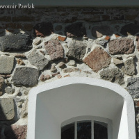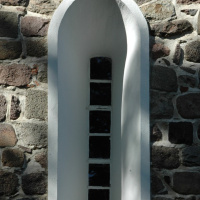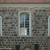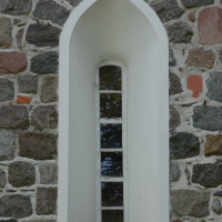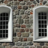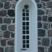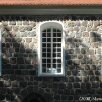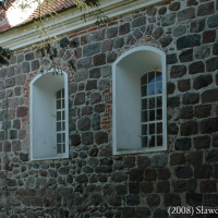 Pierwotne okna, sadzone symetrycznie w ścianach nawy, prezbiterium i apsydzie, otrzymały niskie, silnie rozglifione ościeża, zamknięte ostrołukiem i skośnym parapetem. Niektóre z nich w późniejszym okresie znacznie powiększono zamykając proste ościeża łukiem koszowym. W XIX wieku wszystkie okna obwiedziono dodatkową opaską tynku.